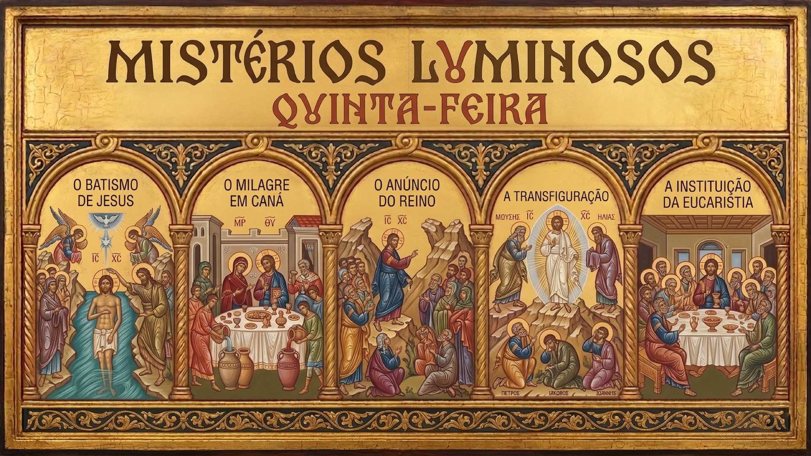 Às quintas-feiras, a Igreja Católica medita os Mistérios Luminosos (ou Mistérios da Luz). Eles contemplam a vida pública de Jesus, passando pelo Batismo no Rio Jordão, a Auto-revelação nas Bodas de Caná, o Anúncio do Reino de Deus, a Transfiguração e a Instituição da Eucaristia.